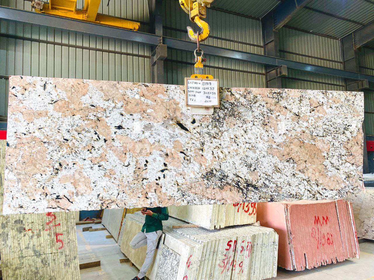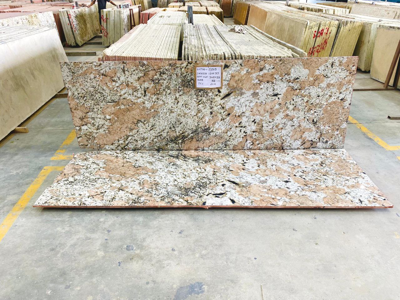 Applications: Kitchen countertops, flooring, wall cladding, staircases, bathroom vanities, island tops, tabletops, window sills, and exterior elevation.